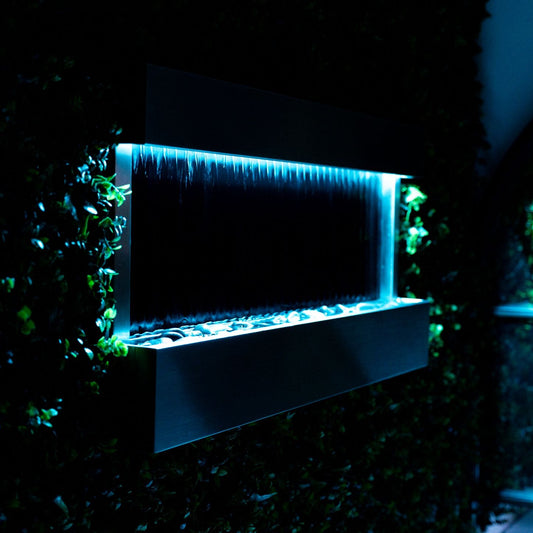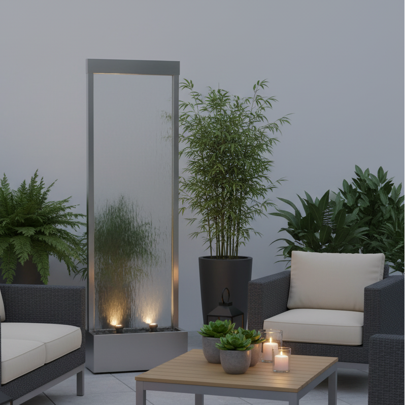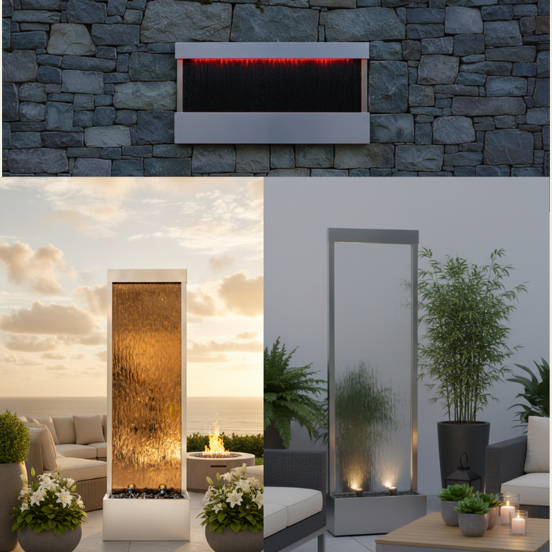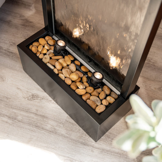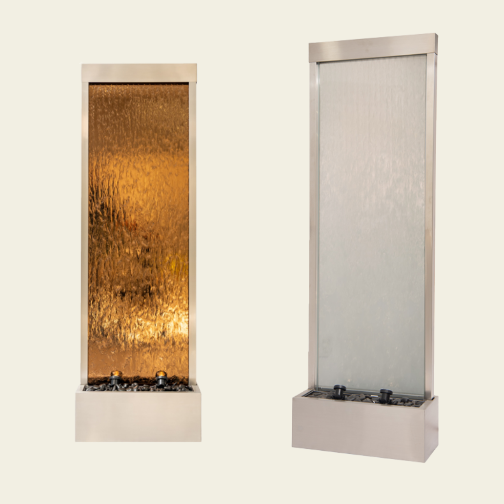 Our fountains feature a high-quality tempered mirror, durable stainless steel or resin frames, and a built-in water pump for continuous, even flow. Each unit includes LED lighting and polished river rocks for a natural touch.